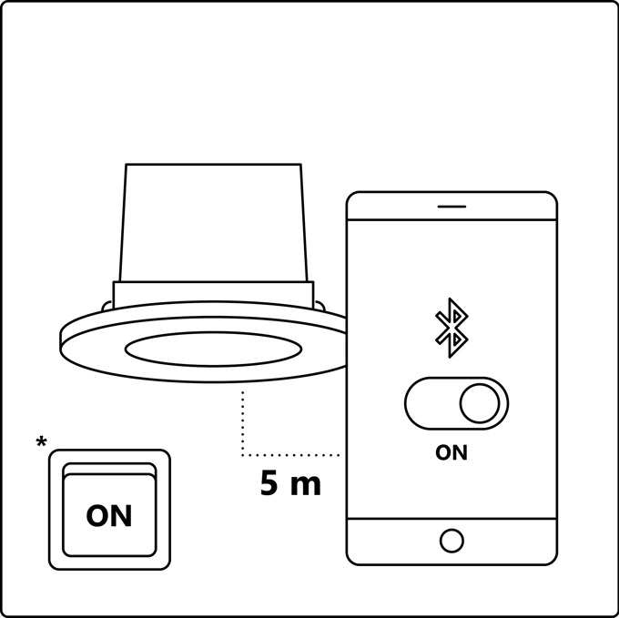 Aktivieren Sie auf Ihrem Gerät Bluetooth. Die Entfernung zum Smart Downlight darf max. 5 Meter betragen. * Denken Sie daran, die Lampe einzuschalten