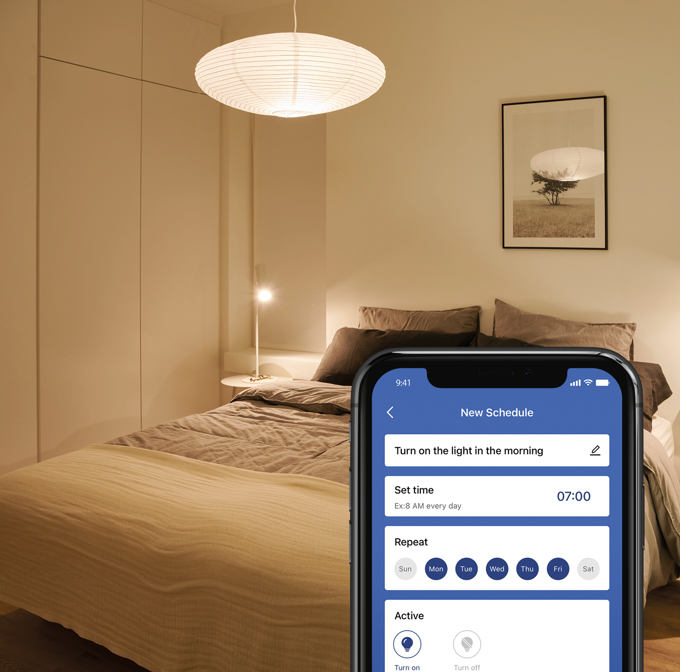 By including Nordlux Smart and its app into your everyday life, you no longer have to look for your keys in the dark or get back out of your warm bed to turn the lights off. The scheduling functions allow you to set your light to turn on and off at desired times, or to schedule your light to be reduced to a certain brightness or color.