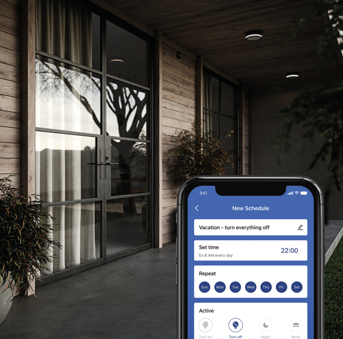 Nordlux Smart Light peut transformer vos ampoules en un système de sécurité résidentiel. La connexion des ampoules à un pont (ou Bridge) vous permet de programmer votre éclairage afin d’imiter le comportement d'une personne à la maison plutôt que de régler vos lumières selon un horaire prévisible. Même votre éclairage extérieur peut être programmé. L’application complémentaire vous permet de contrôler facilement votre éclairage depuis votre lieu de destination. Vous pouvez ainsi vous détendre davantage et réellement profiter de vos congés loin de chez vous.