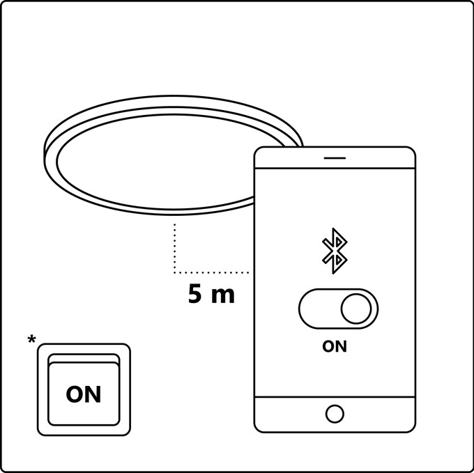 Slå på Bluetooth på enheten. Avstanden til Smart taklampe må ikke overstige 5 meter. * Husk å slå på lampen.