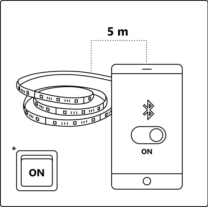 Slå på Bluetooth på din enhet. Avståndet till Smart LED Strip får vara max. 5 meter. * Kom ihåg att slå på LED Strip.